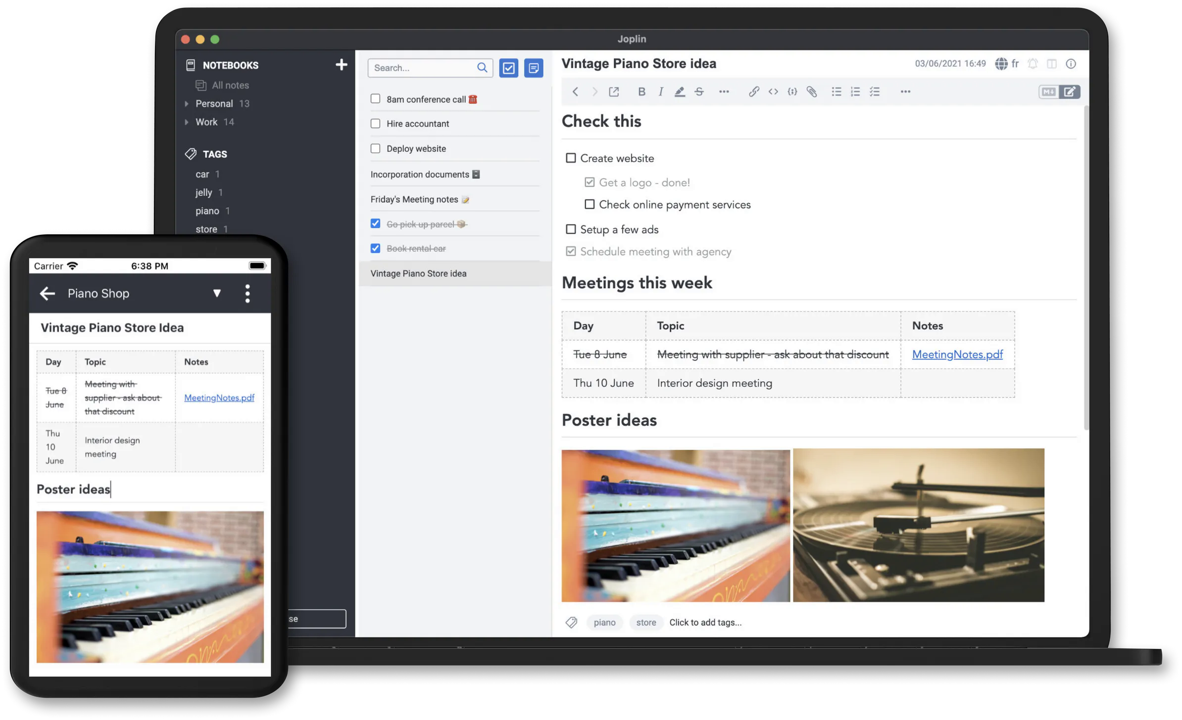 - Note-Taking: Joplin allows you to create and manage notes, to-do lists, and reminders across all your devices.